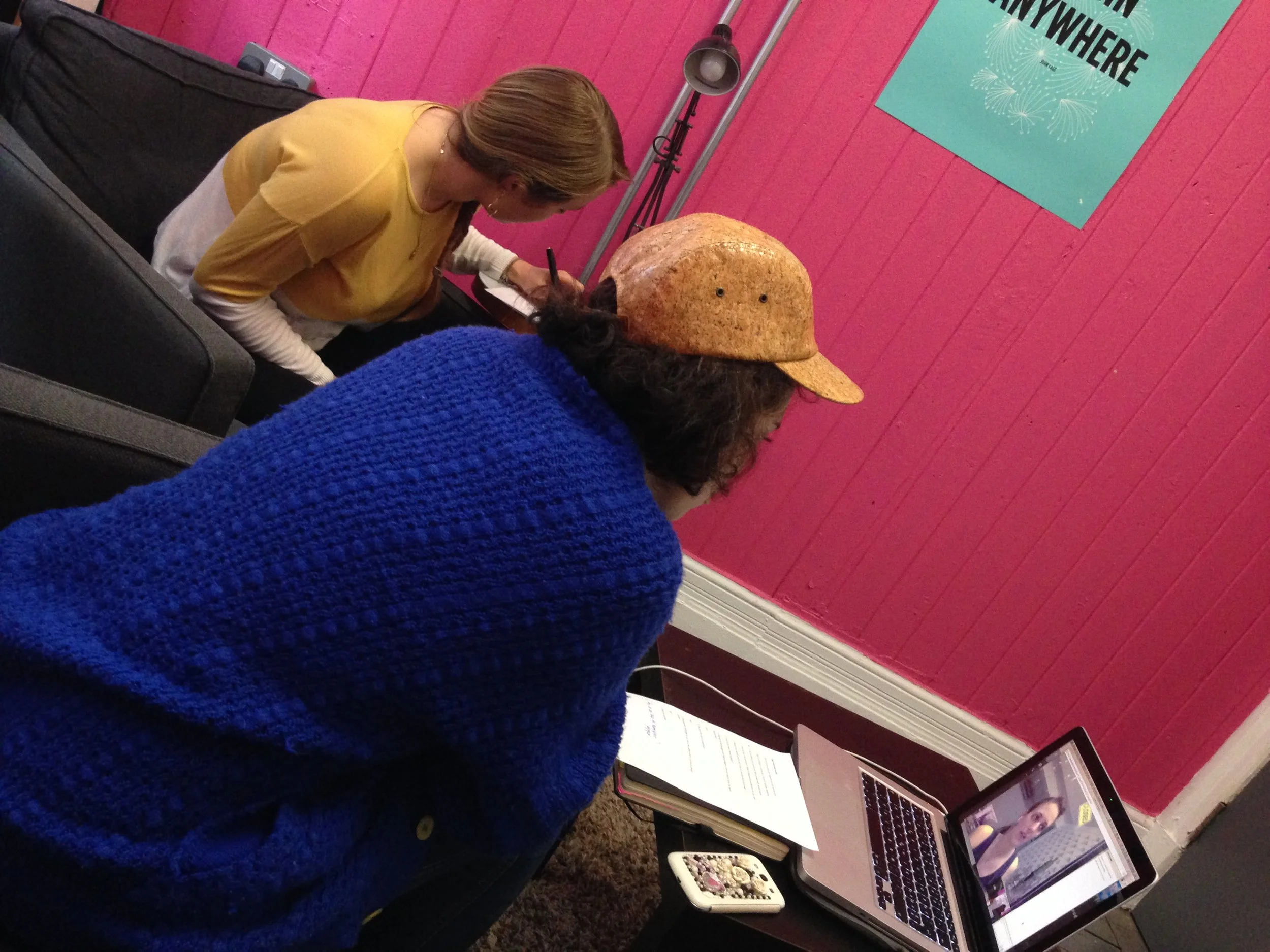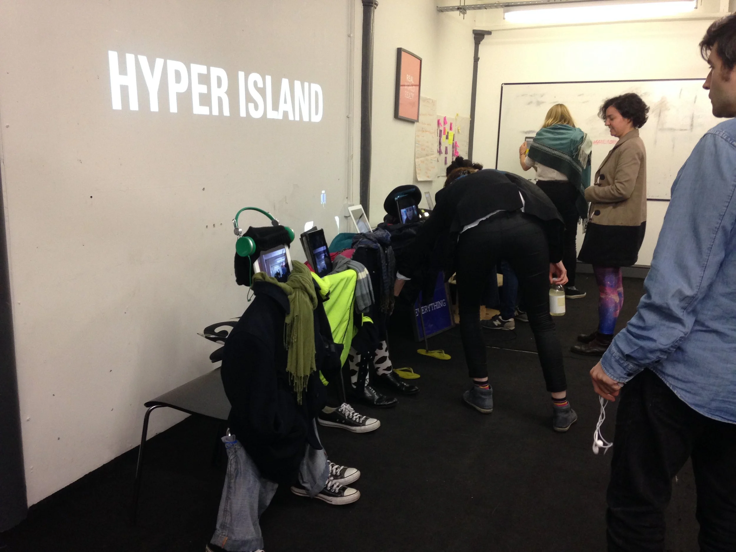 Therefore, for the demo, we came up with a set-up that involved "human-like" machines i.e. tablets dressed up like humanoids for off-site members to call in to the presentation, facilitated by one physical team member who was on-site.